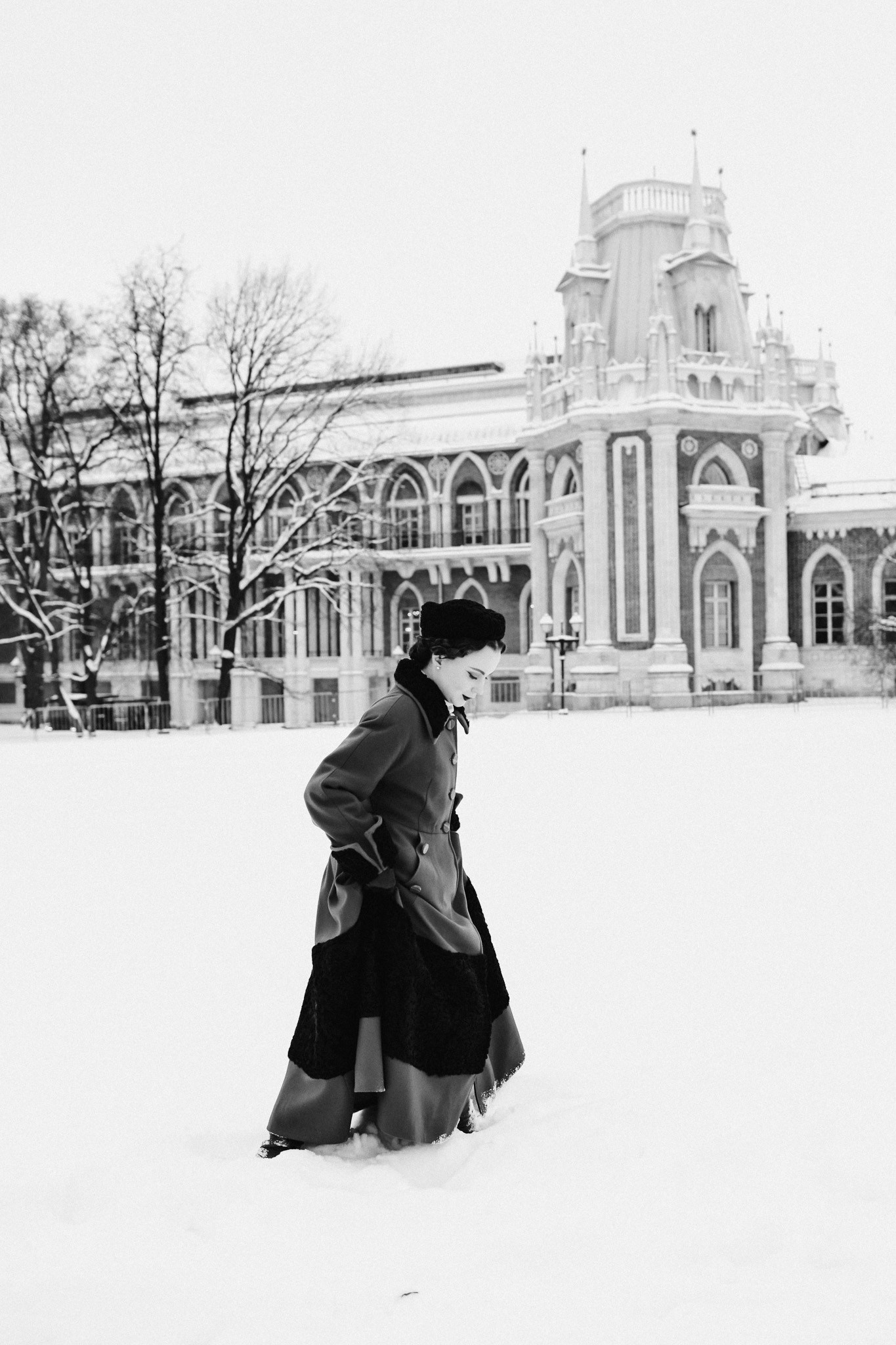 Зимний полдень в старинной усадьбе, скрип снега и тишина, которую хранят стены Царицыно… Эта серия фотографий — посвящение образу русской княгини, чей аристократизм проявляется не в роскоши, а в безупречном вкусе и благородной сдержанности